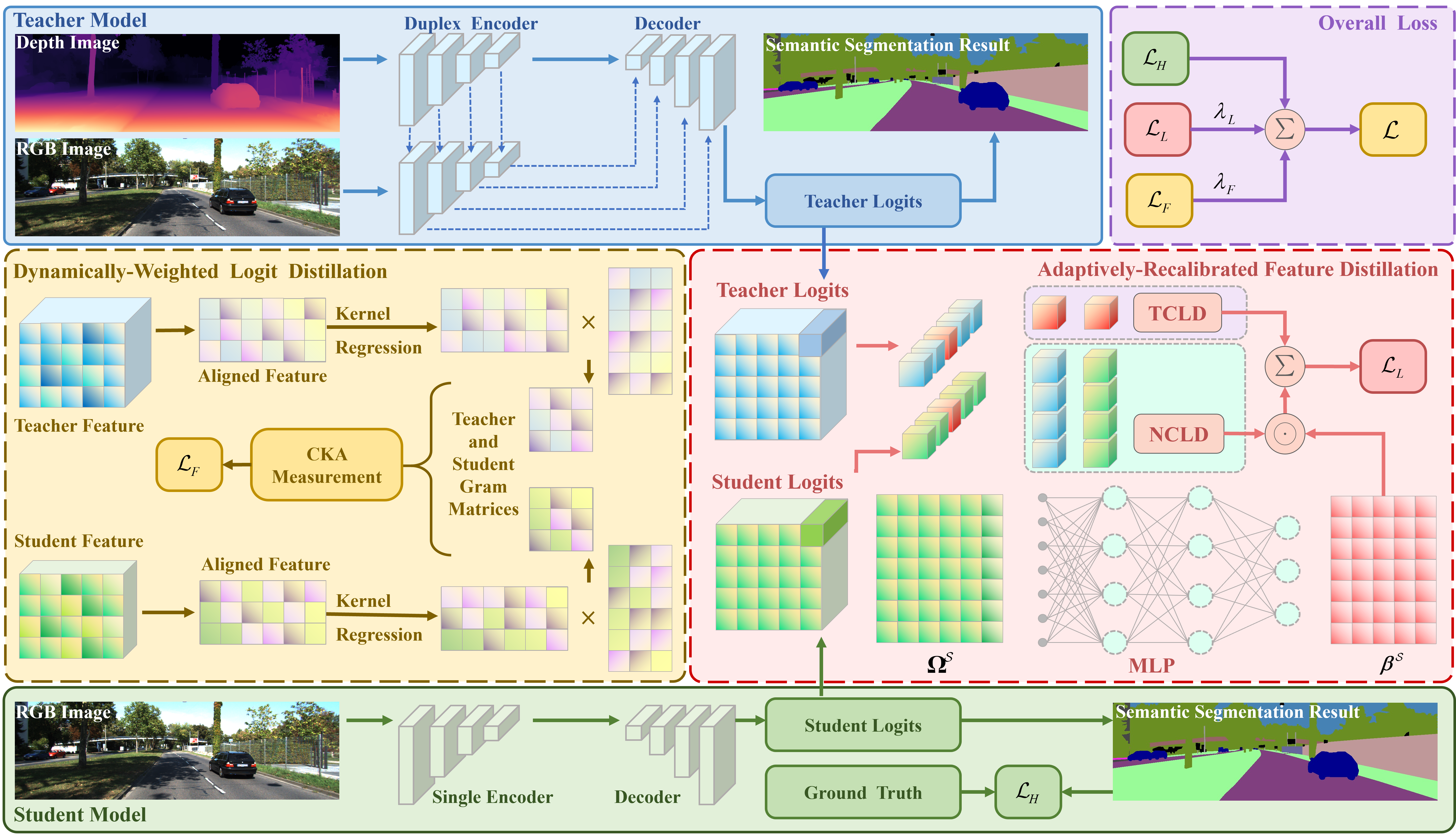 Despite the impressive performance achieved by data-fusion networks with duplex encoders for visual semantic segmentation, they become ineffective when spatial geometric data are not available. Implicitly infusing the spatial geometric prior knowledge acquired by a data-fusion teacher network into a single-modal student network is a practical, albeit less explored research avenue. This article delves into this topic and resorts to knowledge distillation approaches to address this problem. We introduce the Learning to Infuse "X" (LIX) framework, with novel contributions in both logit distillation and feature distillation aspects. We present a mathematical proof that underscores the limitation of using a single, fixed weight in decoupled knowledge distillation and introduce a logit-wise dynamic weight controller as a solution to this issue. Furthermore, we develop an adaptively-recalibrated feature distillation algorithm, including two novel techniques: feature recalibration via kernel regression and feature consistency quantification via centered kernel alignment. Extensive experiments conducted with intermediate-fusion and late-fusion networks across various public datasets provide both quantitative and qualitative evaluations, demonstrating the superior performance of our LIX framework when compared to other state-of-the-art approaches.